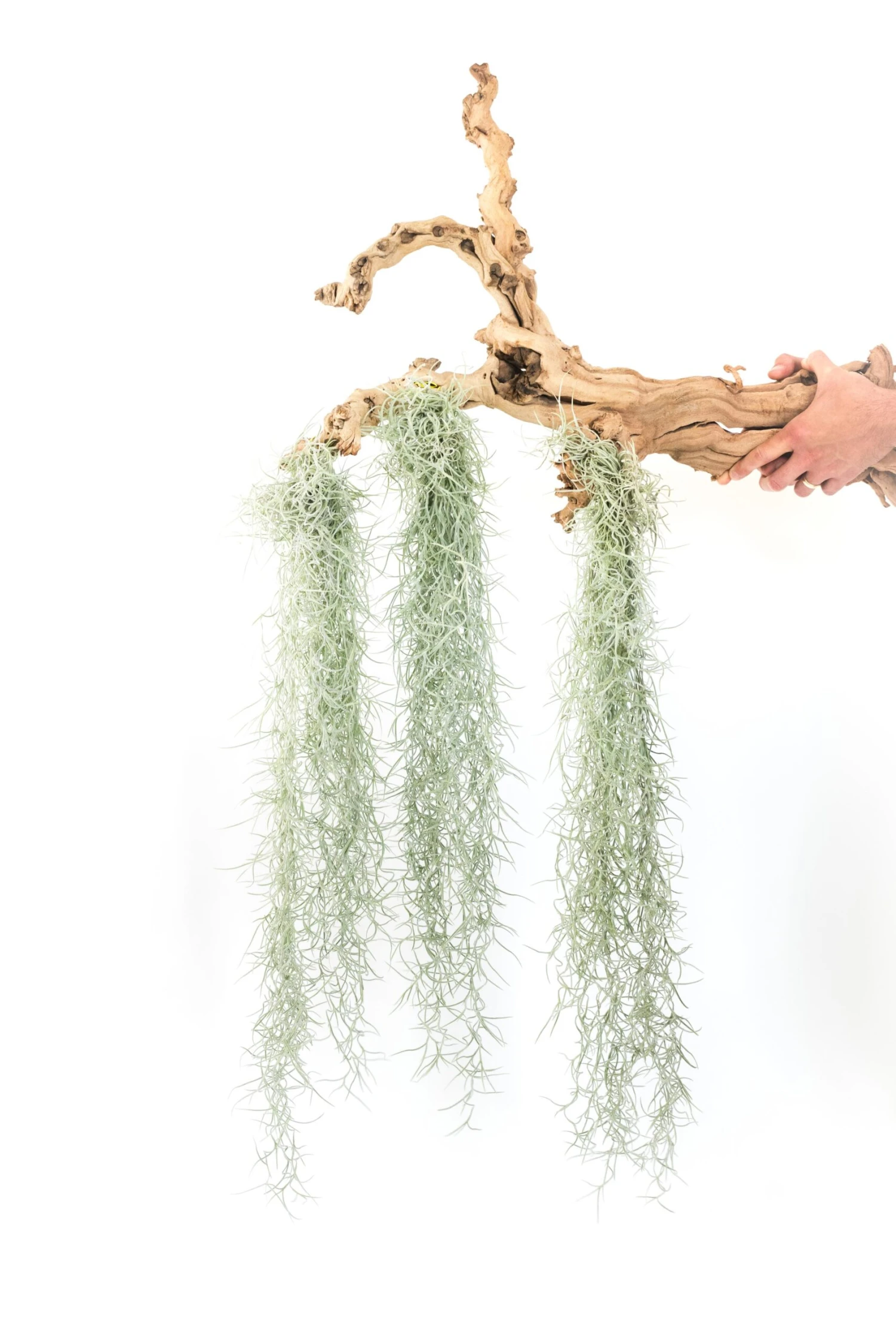 Our Colombia Thick Spanish Moss clumps are a wonderful addition to your collection of air plants. This version of Spanish Moss has much thicker tendrils and a very vibrant silver color compared to the more common gray variety found in the Southern USA. Each clump of moss will be fairly uniform in shape, with a small tie to use for hanging.