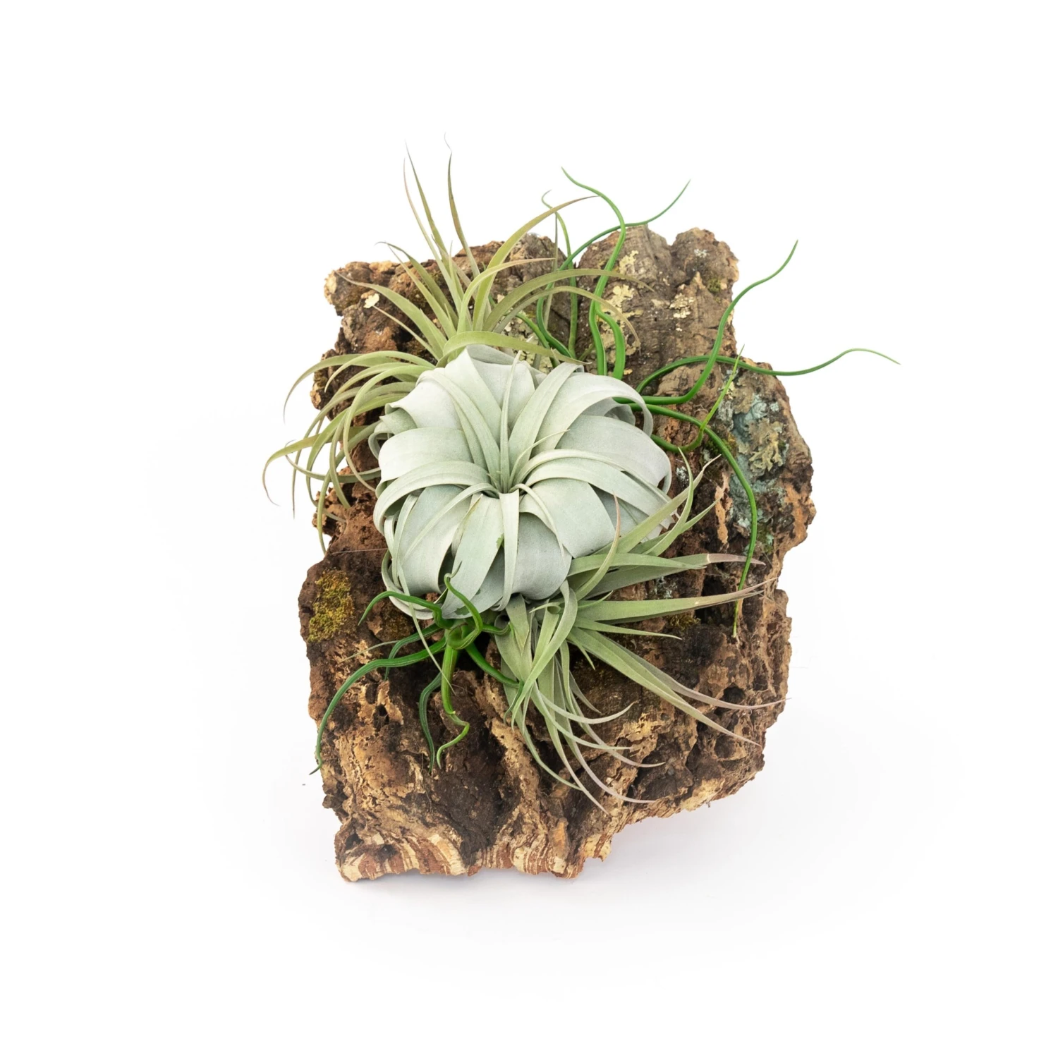 Throughout the tropics, air plants attach themselves to the branches, trunks, and aerial roots of trees. This was the inspiration for this piece. These easy-going plants require bright, but indirect sunlight. Neutral tones complement any environment. Mount multiple arrangements in rows or columns to create a living wall. Every order includes waterproof glue for attaching your air plants. The air plants will not arrive attached to the bark.Â