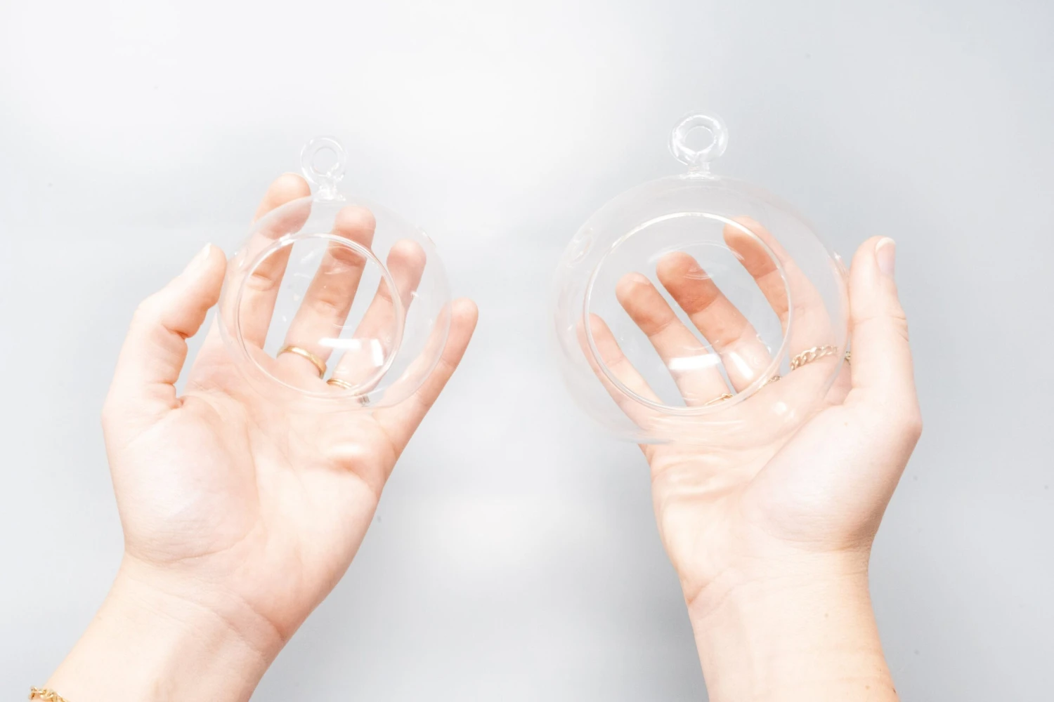 These cute mini glass globe terrariums with flat bottom are perfect for our small variety of Ionantha air plants and smaller species. They have a hook for hanging or you can place them on their flat bottom. Add your sand, stones, moss, seashells, starfish or…..the possibilities are endless!