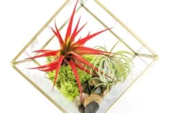 Heptahedron Geometric Glass Terrarium With Tillandsia Red Abdita And Ionantha Air Plants